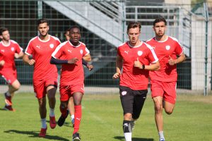Pour effectuer ce test, les joueurs étaient divisés en trois groupes. Certains, l’occasion de cet exercice, ont montré qu’ils étaient déj particulièrement affûtés, comme Ludovic Saline, Andrea Marques, Morgan Mauquit, Lilian Fournier ou Sofiane Benatmane. Après cet effort intense, les Beauvaisiens ont ensuite touché le ballon, au travers d’un circuit avec finition devant le but.